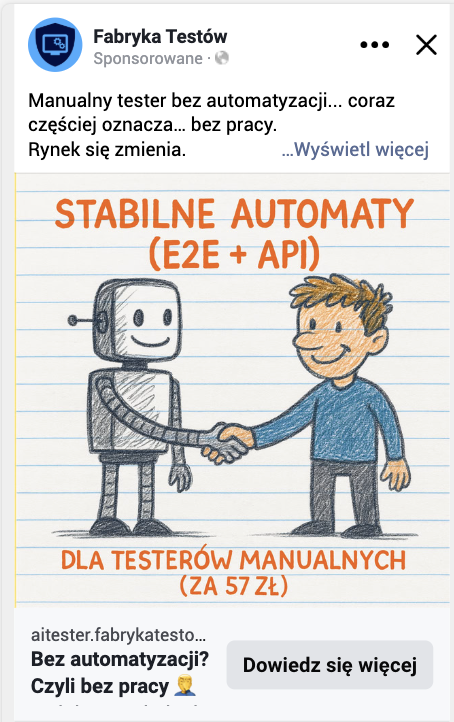 Fabryka Testów to wiodąca platforma edukacyjna dla testerów oprogramowania prowadzona przez Cezarego Łysiaka i Pawła Zwierzchowskiego. Wspólnie łączą unikatowe doświadczenie Dev Team Leada oraz Senior QA, co czyni ich rozpoznawalnymi ekspertami w polskiej społeczności testerskiej. Platforma doczekała się ponad 500 kursantów i oferuje kompleksowe programy rozwojowe – od kursów podstawowych po zaawansowane szkolenia z automatyzacji testów.
