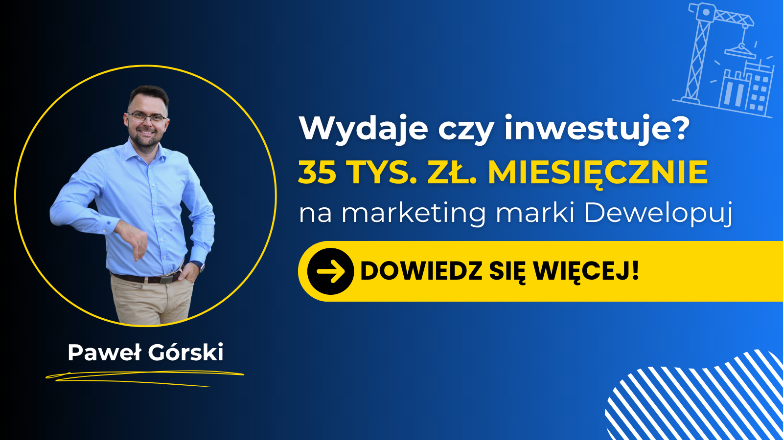 Paweł: Dziś utrzymanie działu marketingu i sprzedaży Dewelopuj wraz z płatną reklamą to wydatki rzędu 35 tys. zł netto miesięcznie… Bardzo ciężko jest dziś rosnąć w biznesie tylko organicznie, na pewno szybciej z budżetem reklamowym.