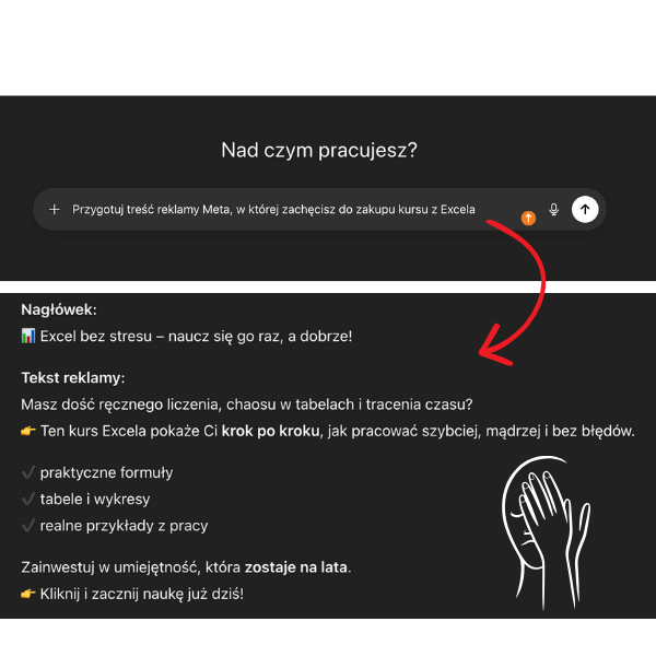 - Jeśli Meta Ads Copy Squad nie spełni Twoich oczekiwań po miesiącu pracy (zgodnie z instrukcją) – osobiście stworzę dla Ciebie 5 profesjonalnych tekstów reklamowych.